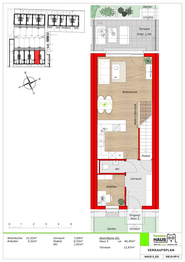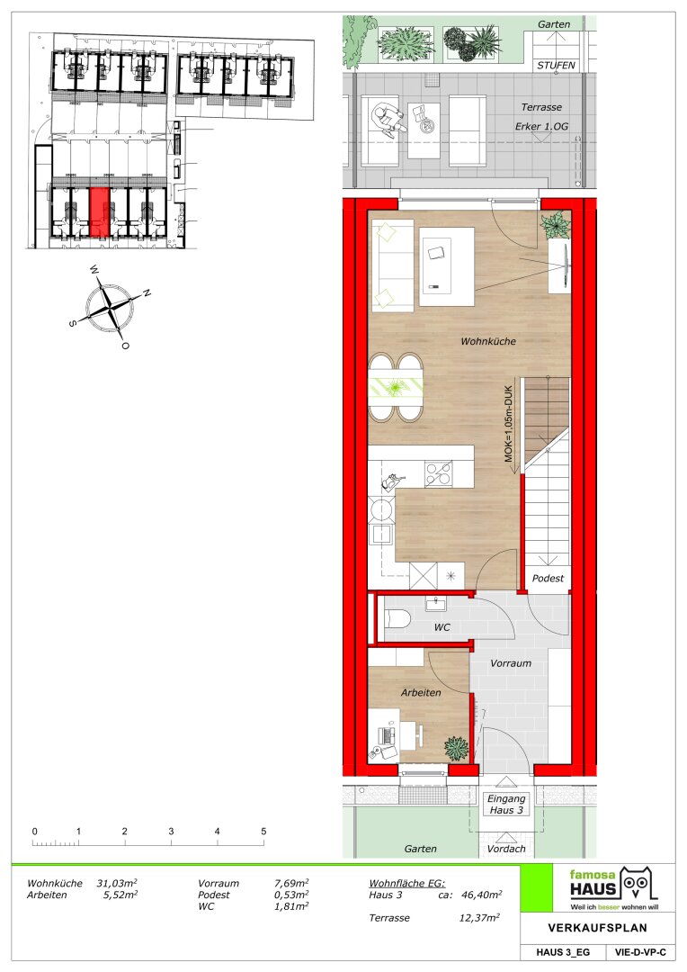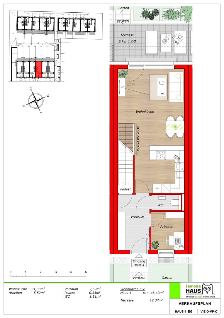 In Wien-Liesing (Hungereckstr 54-58) bieten 16 hochwertigen Ziegelmassiv-Reihenhäuser mit einer Wohnfläche von 114 bis 133 m² viel Platz für Menschen, die in Wien oder im Süden von Wien arbeiten und ein Zuhause suchen, das Wohnqualität, Rückzug und Flexibilität vereint. Für Tage mit klaren Abläufen und Abende mit mehr Leichtigkeit: Der Eigengarten dient zur Erholung und Ernten des eigens angepflanzten Gemüses, Terrasse und Dachterrasse zu stilvollen Freiräumen für Sonne, Gespräche und Entspannung. Die Vollunterkellerung schafft zusätzlichen Raum für Home Office, Fitness, Hobbys oder Stauraum – genau dort, wo moderne Lebensentwürfe Platz brauchen. Schlüsselfertig heißt hier: ankommen, einrichten, leben – mit dem sicheren Gefühl, dass alles bereit ist.