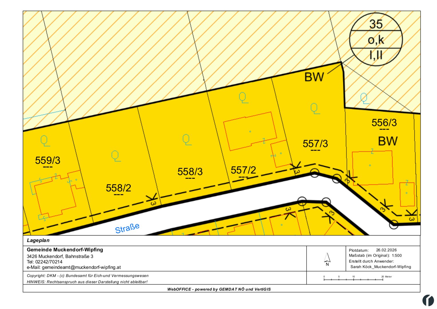 Das Grundstück ist als Bauland-Wohngebiet gewidmet und ermöglicht eine Bebauung gemäß Bauklasse II, wodurch sich vielfältige architektonische Gestaltungsmöglichkeiten ergeben.