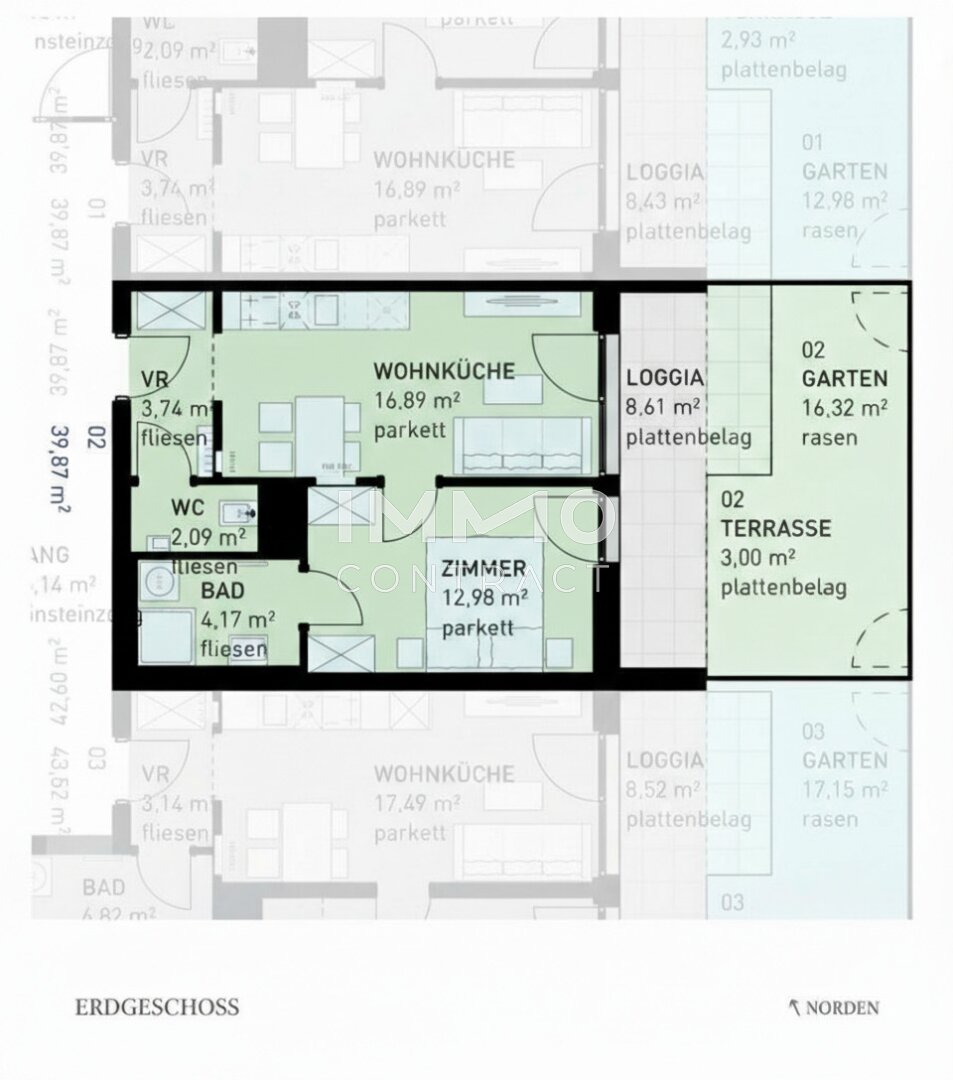 * Jede Wohnung mit privater Freifläche (Loggia, Balkon, Terrasse, Eigengarten)