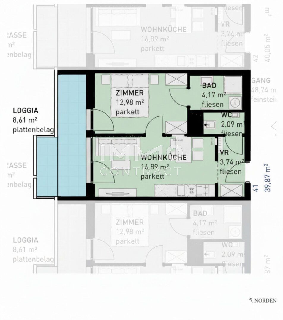 Alle Einheiten werden schlüsselfertig übergeben — Sanitärinstallationen, Fliesen und Parkett sind im Kaufpreis enthalten. Genauere Angaben zur Ausstattung entnehmen Sie bitte der Leistungsbeschreibung im Booklet.
