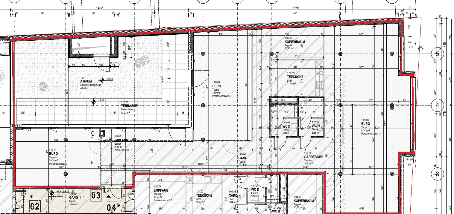 Die derzeitige Raumaufteilung besteht aus 2 Büroräumen samt großzügigem Empfang, einem Kopierraum, einem Archiv, einer Teeküche und einer ca. 38m² großen Terrassenfläche.