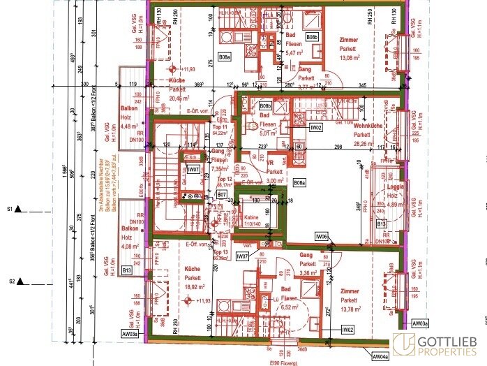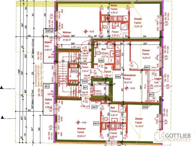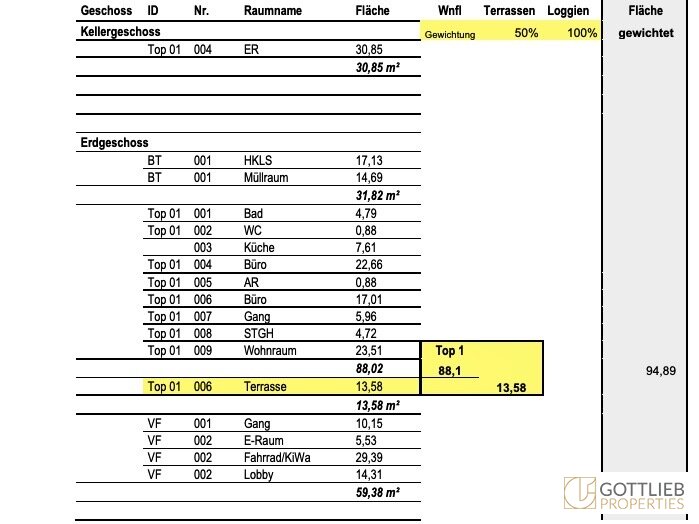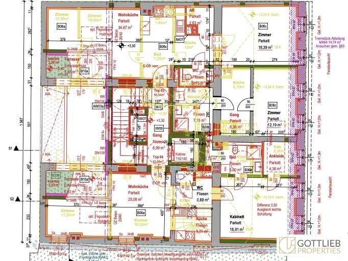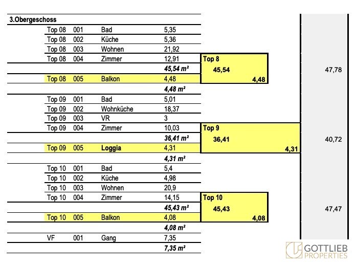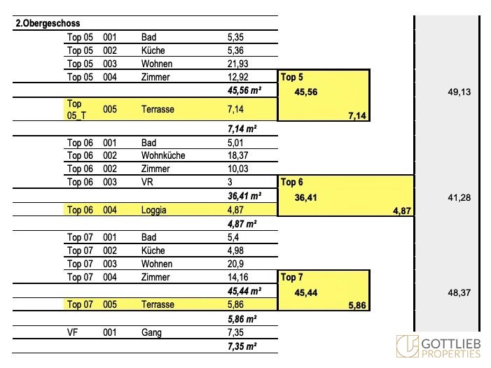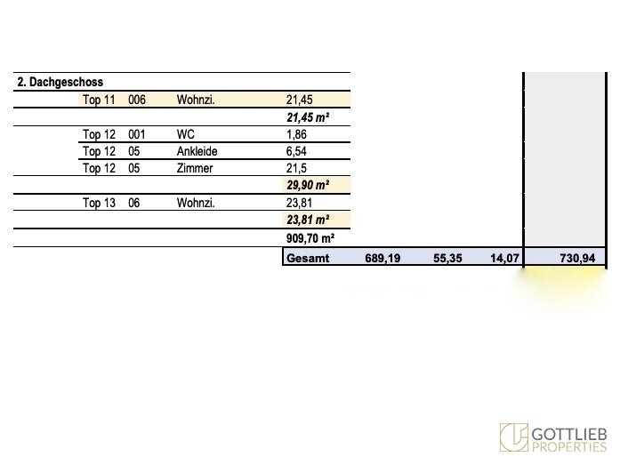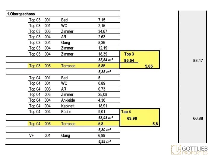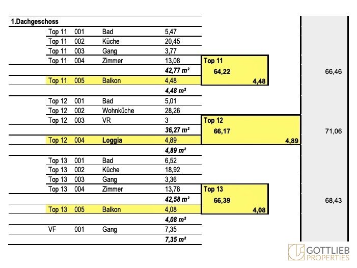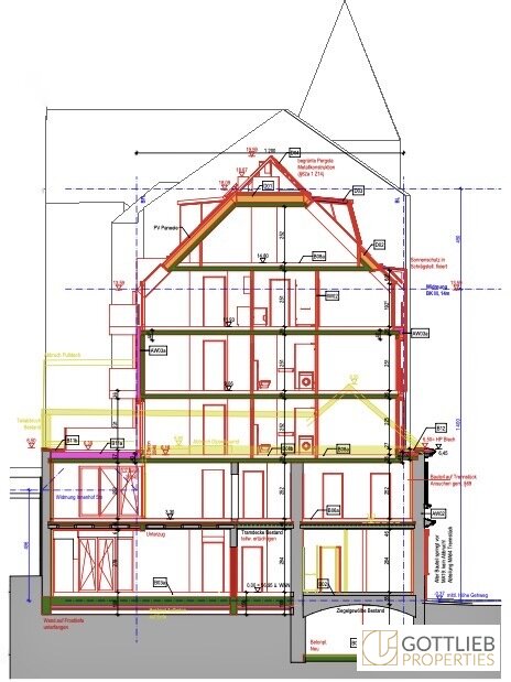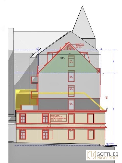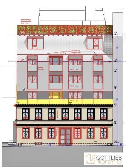 Eine Baugenehmigung zur Abtragung der bestehenden Dachkonstruktion und den Ausbau des Dachgeschosses sieht eine Aufstockung um zwei Festgeschosse - zweiter und dritter Stock - vor, welche zusammen mit dem ersten Obergeschoss insgesamt acht neue Wohneinheiten ermöglicht. Der Ausbau von zwei Dachgeschossen sieht weitere drei Etagenwohnungen vor. Durch den Um- und Ausbau ergibt sich eine Wohnnutzfläche von gesamt ca. 730,86 m². Alle Wohnungen sind entweder mit Balkonen, Terrassen von gesamt ca. 55,35 m² oder Loggien im Umfang von insgesamt ca. 14,07 m² ausgestattet.
