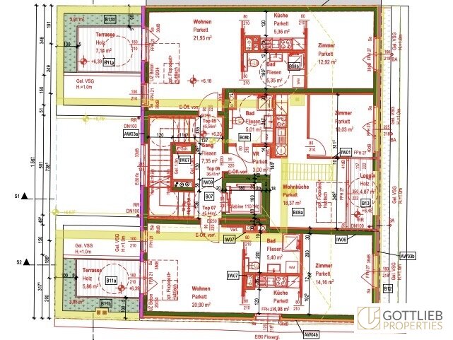 + straßen- und hofseitig gelegene Terrassen, Balkone und Loggien mit einer Größe von ca. 69 m²