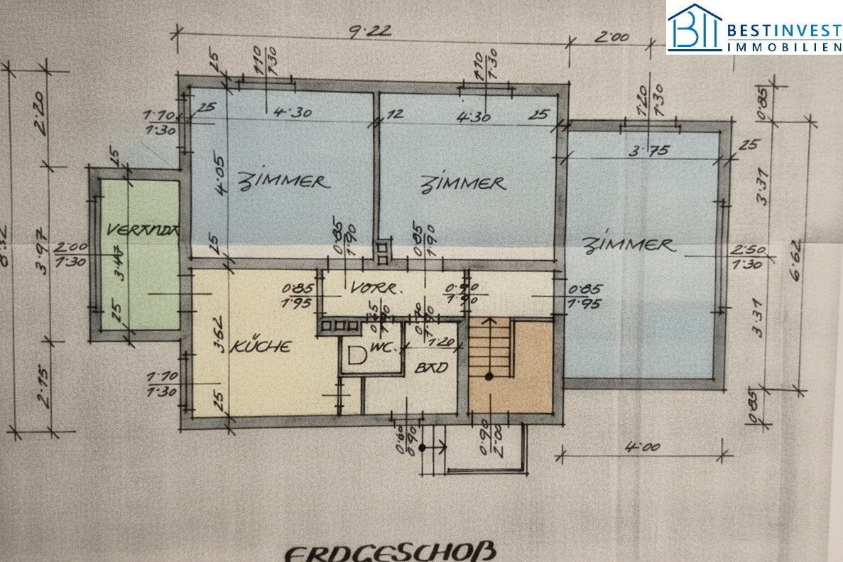 Erdgeschoss mit Netto-Fläche von 85m2: 3 Zimmer plus Küche