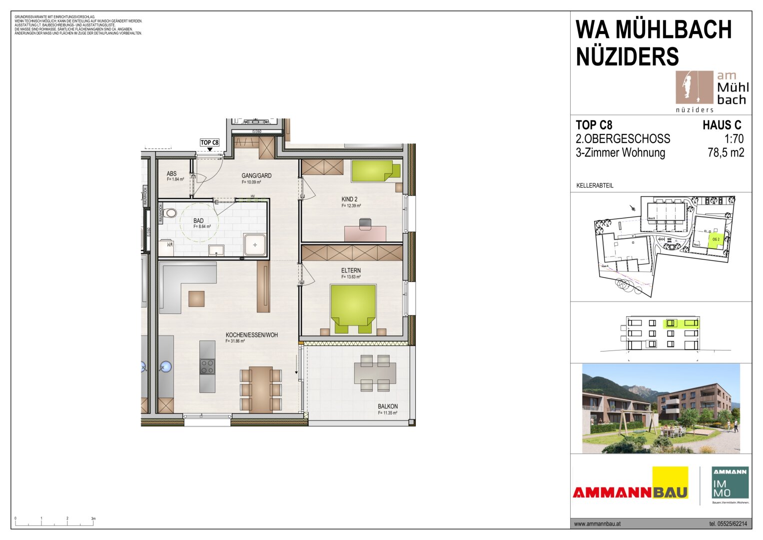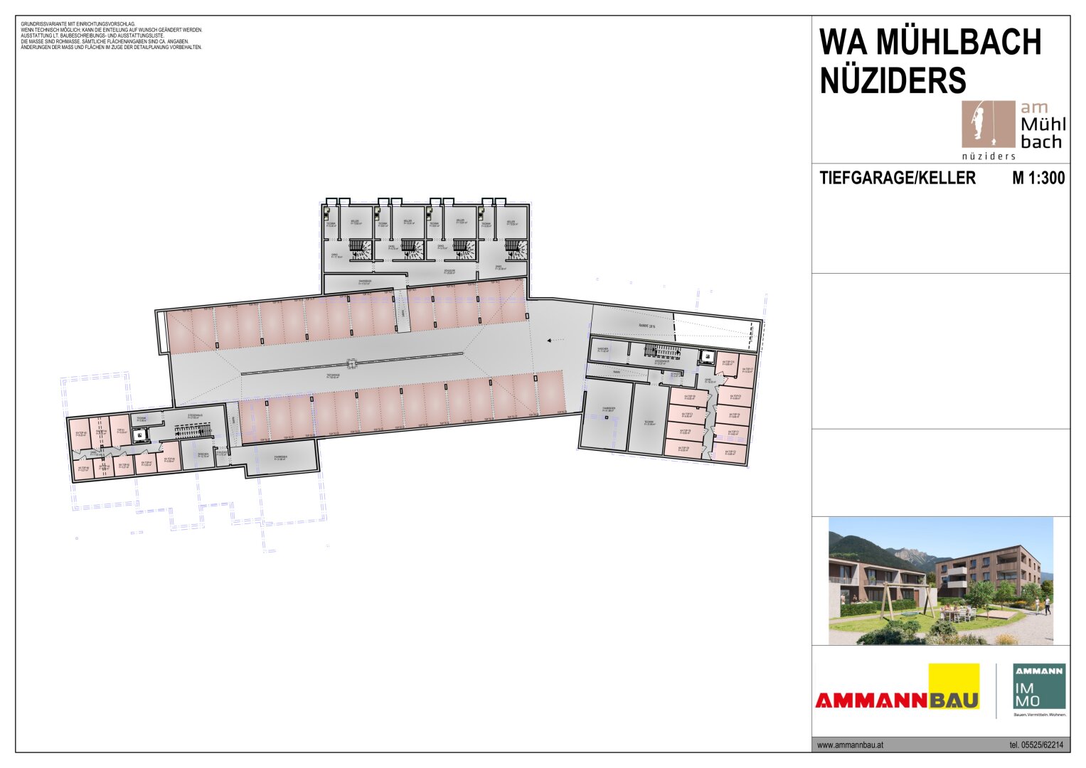 Ammann Wohnbau errichtet in Nüziders Landstraße in gewohnter Wohnqualität Wohnungen zum wohlfühlen. Die Wohnanlage besticht durch moderne, zeitlos schöne Architektur. 22 Einheiten in verschiedenen Gebäuden versprechen ein ungewohnt wohliges Wohngefühl einer Wohnanlage. Die Wohnungen sind über einen Personenlift barrierefrei zugänglich. Die Wohnungen im Erdgeschoss verfügen über einen eigenen Gartenanteil. Stellplätze für Besucher befinden sich im Außenbereich der Anlage, die Einstellplätze befinden sich in der Tiefgarage welche um € 27.000.- zusätzlich erworben werden können.