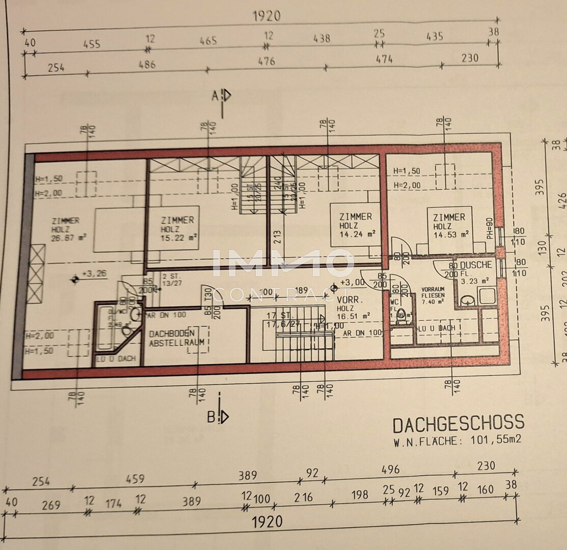 Über eine Treppe gelangen Sie ins Dachgeschoss, das aus drei weiteren Zimmern besteht. Die Räume im DG sind großzügig und können vielfältig genutzt werden, sei es als Schlafräume, Büroräume oder für andere Zwecke. Im DG befinden sich zudem ein Duschbereich und ein separates WC, was zusätzlichen Komfort bietet.