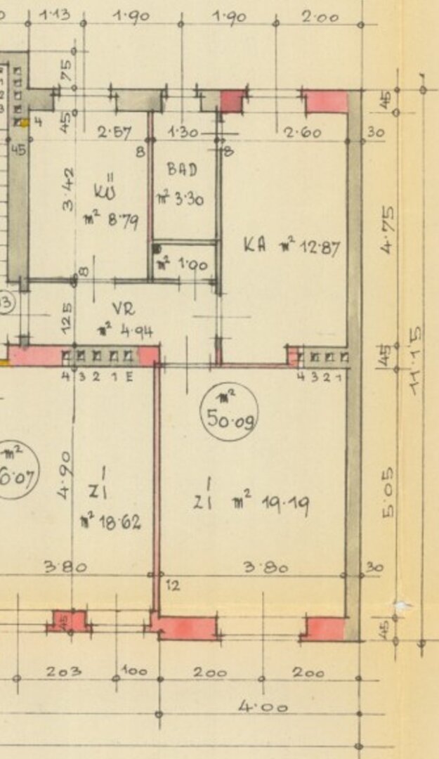 Die sanierte 2,5-Zimmer-Wohnung erstreckt sich auf ca. 50m² und gliedert sich wie folgt:
