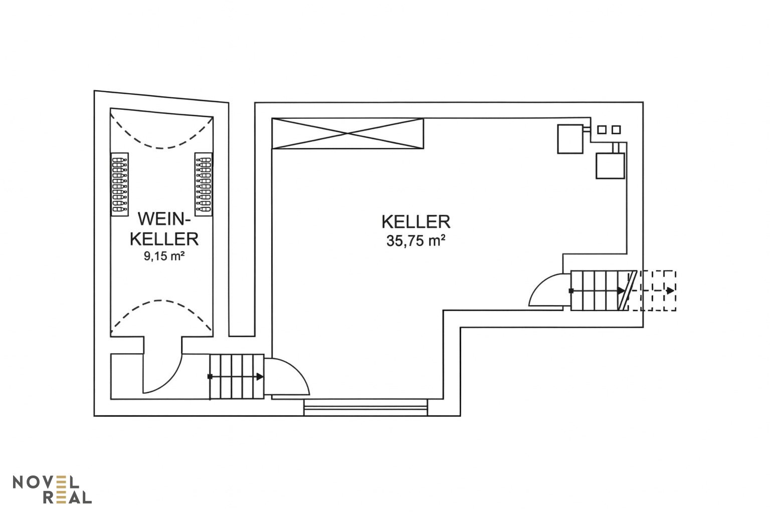 Der Kellerbereich präsentiert sich als funktionaler und zugleich atmosphärischer Zusatzraum des Hauses. Der großzügige Hauptkeller bietet vielfältige Nutzungsmöglichkeiten – ob als Lagerfläche, Werkstatt, Hobbyzone oder strukturierter Haushaltsbereich. Durch seine klare Raumaufteilung und die gute Erreichbarkeit über die interne Treppe eignet er sich ideal für eine organisierte Nutzung im Alltag.