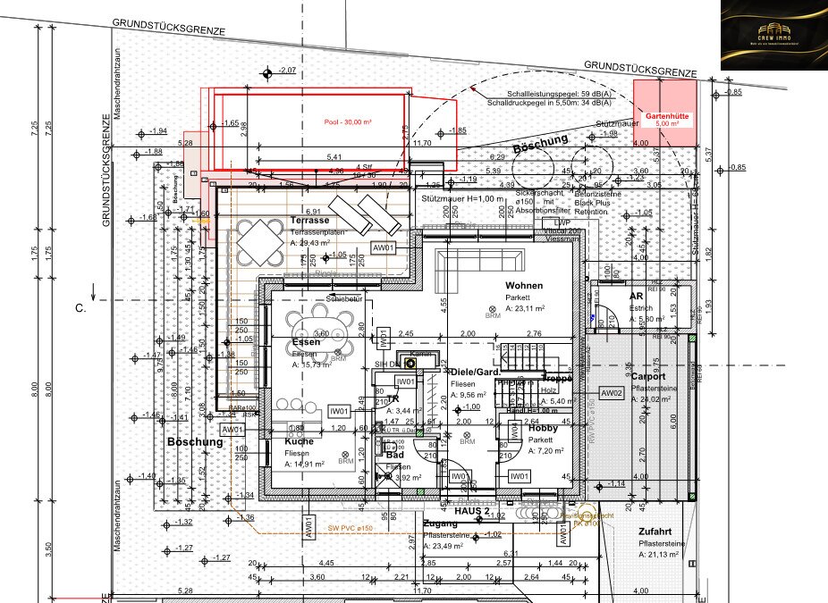 • Carport: vorhanden (Genehmigt nicht gebaut)