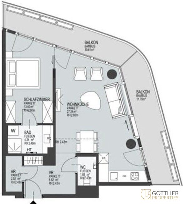 + ca. 11,79 m² und 10,61 m² nordwest- und nordostseitige Terrassen