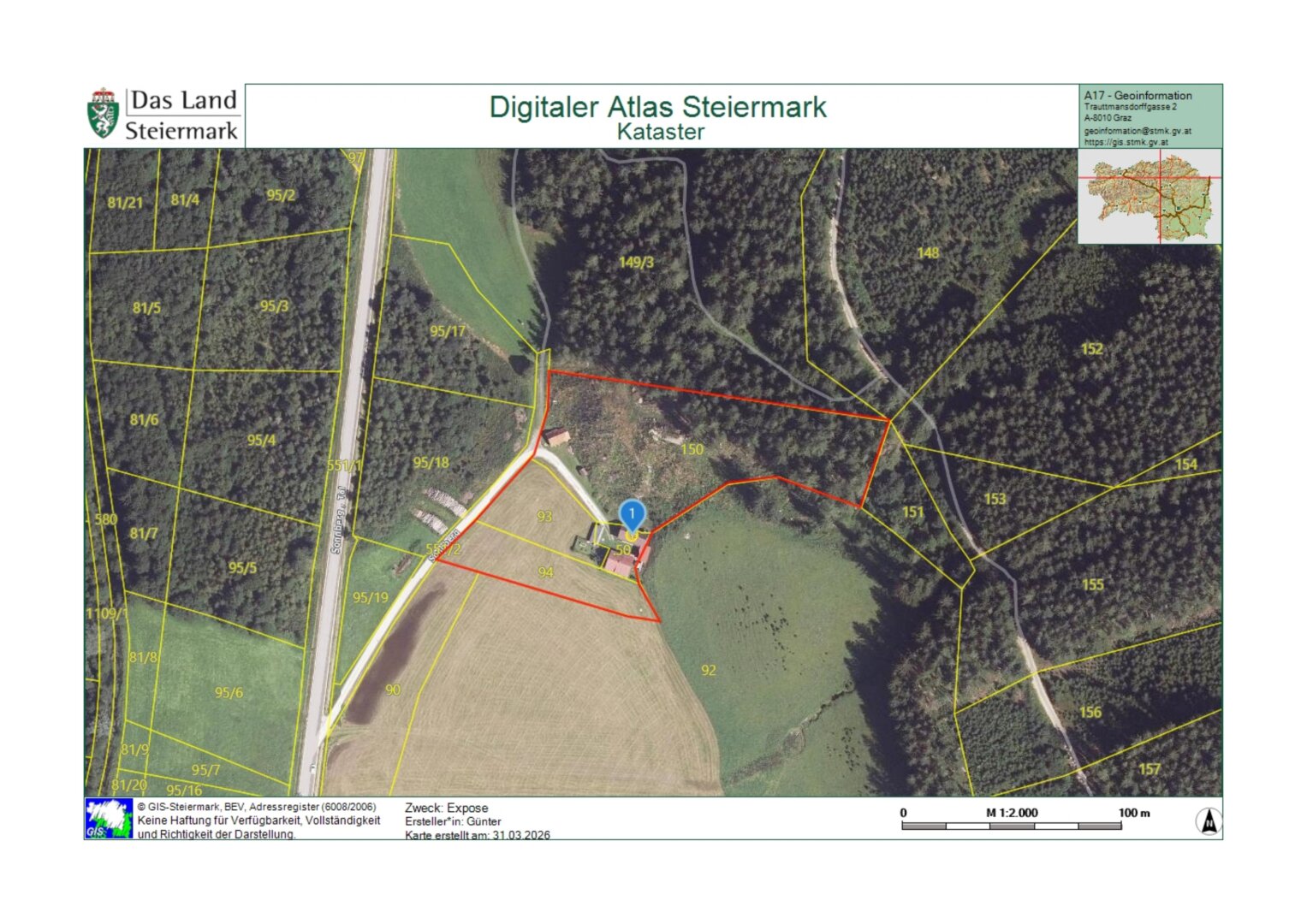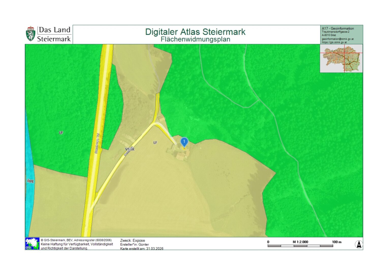 Auf einer Gesamtgrundstücksfläche von 10.978 m² präsentiert sich der ehemalige Kleinbauernhof als liebevoll erhaltenes Anwesen mit vielseitigem Nutzungspotenzial. Die Liegenschaft umfasst zwei Grundbücher mit Flächenwidmungen bzw. Nutzungsarten aus Landwirtschaft, Wald, Gärten, Gebäude- und Straßenfläche sowie zusätzlichen 1.737 m² Landwirtschaftsfläche. Für den Erwerb ist eine Genehmigung der Grundverkehrsbehörde einzuholen, was insbesondere bei landwirtschaftlich geprägten Liegenschaften ein wesentlicher Punkt in der Abwicklung ist.