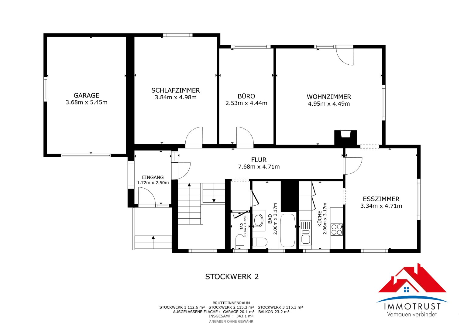 Unter Zugrundelegung deiner korrigierten Flächenangaben stehen hier insgesamt ca. 341,1 m² Nutzfläche zur Verfügung, wovon ca. 230,6 m² als Wohnfläche gelten. Das Haus überzeugt durch eine durchdachte Aufteilung auf Keller-/Untergeschoss, Erdgeschoss und Obergeschoss und bietet damit viel Raum für Familie, Arbeiten, Gäste, Hobby und Lagerung. Im Exposé sind insgesamt 7 Zimmer, 2 Bäder, 2 WCs, 1 Garage, 1 Balkon und 6 Abstellräumeausgewiesen; ausgeführt ist das Gebäude in Massivbauweise mit Satteldach, Fliesen-, Parkett- und Steinböden, Einbauküche, Alarmanlage, außenliegendem Sonnenschutz sowie Doppel- bzw. Mehrfachverglasung. Beheizt wird das Haus über eine Zentralheizung mit Pellets.