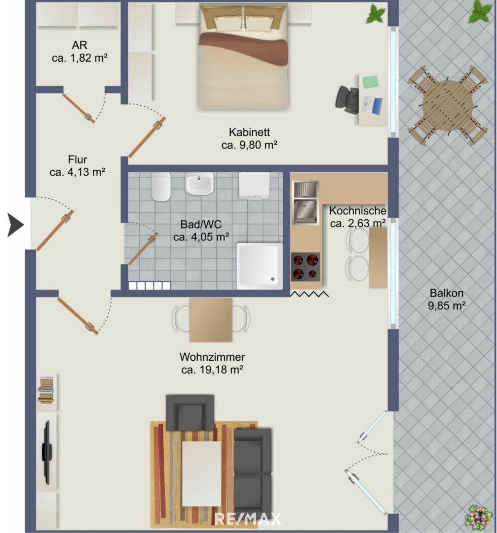 - Wohn-/Esszimmer – ca. 19,18 m²