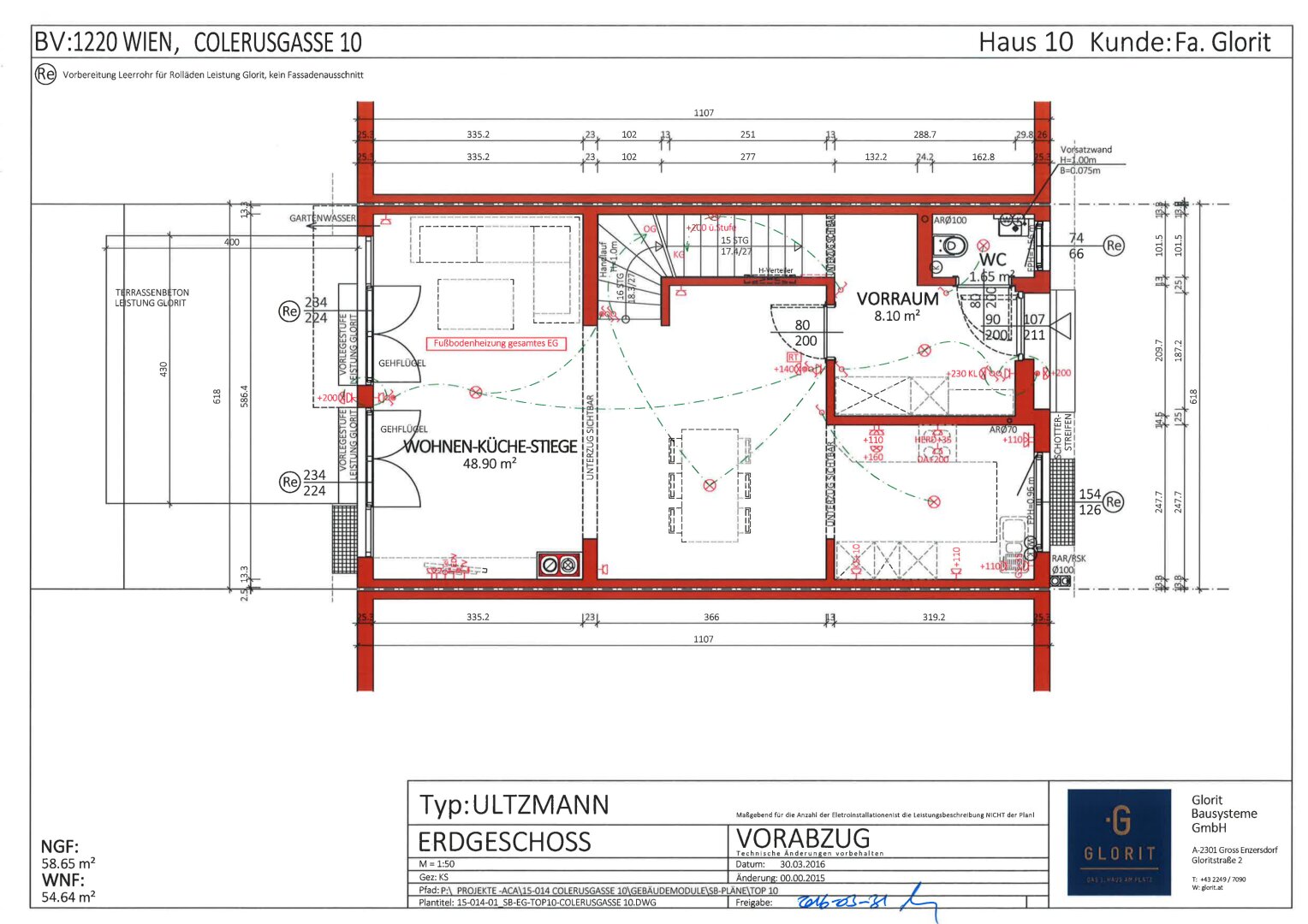 EG: Vorraum, WC, gegliedertes Wohnzimmer (Wohnbereich / Essbereich) mit offener Küche, Stiegenaufgang