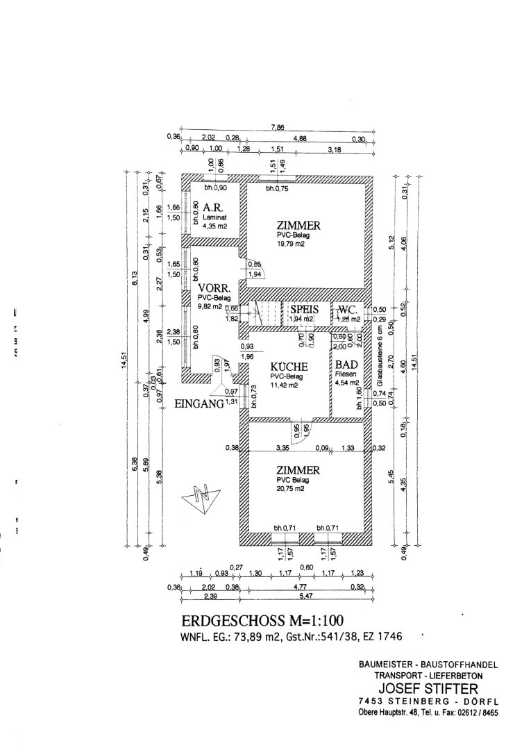 - Ziegelmassivbau Alufenster 2fach verglast (großteils mit Rolläden), Zimmer mit Melan oder Kunststoffböden, Bäder und WC mit Fliesen