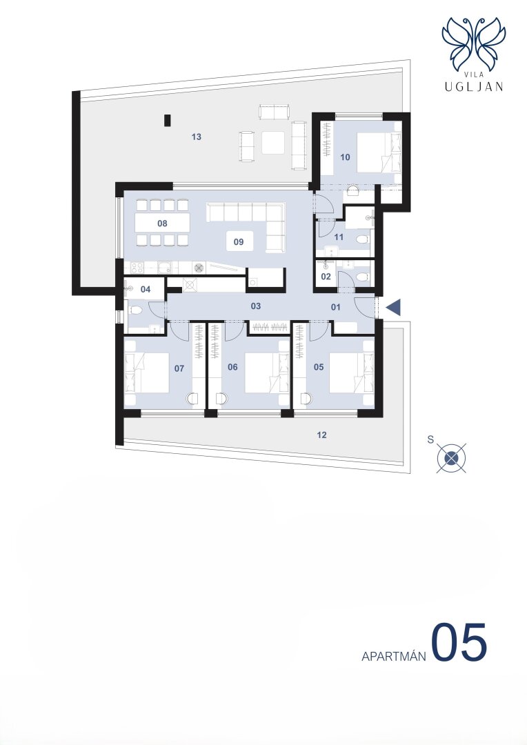5-Zimmer-Apartments A5 / 2. Stock, gut aufgeteilt bietet: (Raumnummer in Grundrisse)