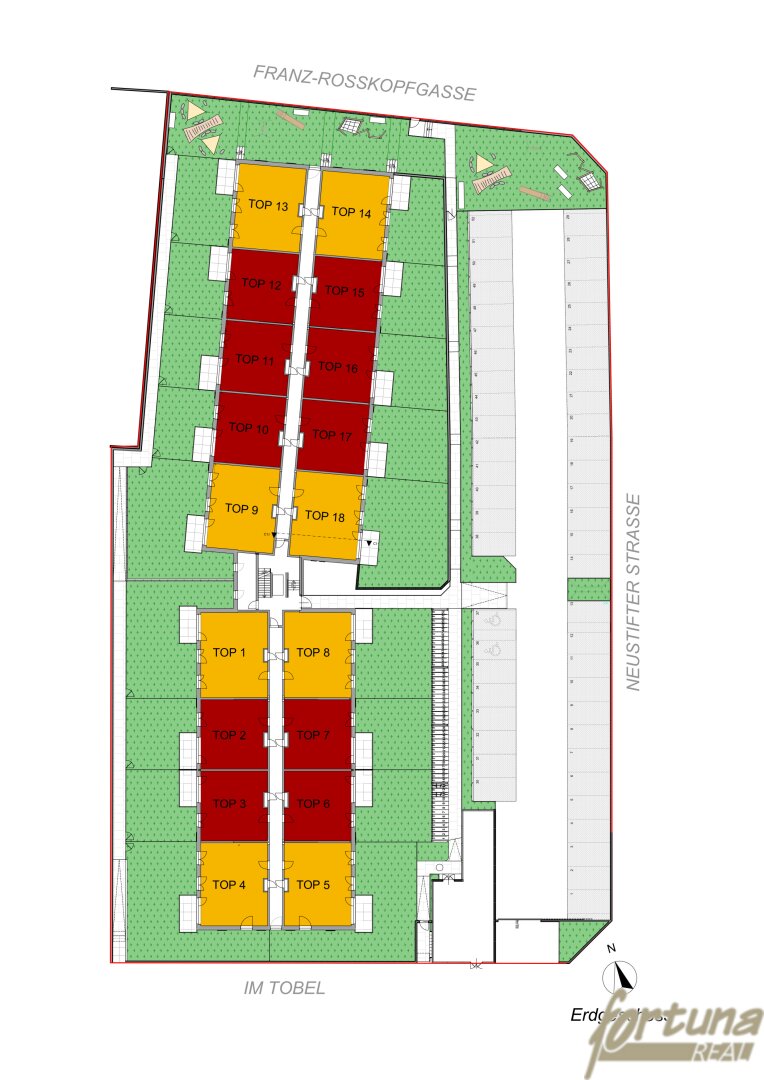 Zwei moderne Baukörper, verbunden über ein gemeinsames Stiegenhaus, beherbergen insgesamt 52 Eigentumswohnungen. Jede Wohnung verfügt über eine Freifläche - entweder Eigengarten oder Balkon. Es werden 53 Stellplätze, ein überdachter Müllplatz sowie Spielplätze verfügbar sein.