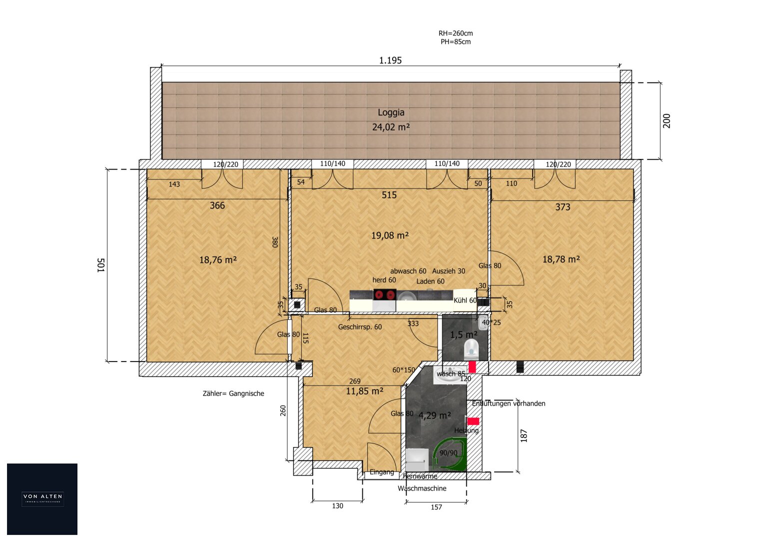 + ca. 99 m² Nutzfläche inkl. Loggia mit ca. 24 m² zzgl. Kellerabteil